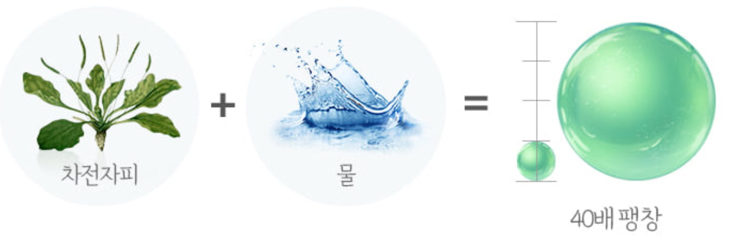물과 만나면 무려 40배가 팽창하는 식이섬유로 포만감과 배변효과에 큰 효과를 가져옵니다.