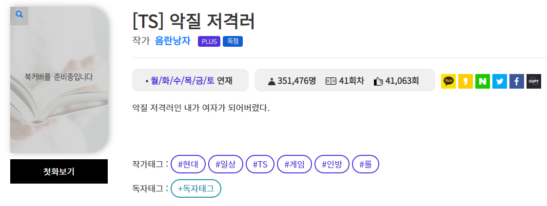 악질 저격러인 내가 여자가 되어버렸다라는 작품입니다. 저격러가 악플을 다는 사람을 의미하는지는 모르겠지만 신비한 주제이긴 할 것 같습니다.