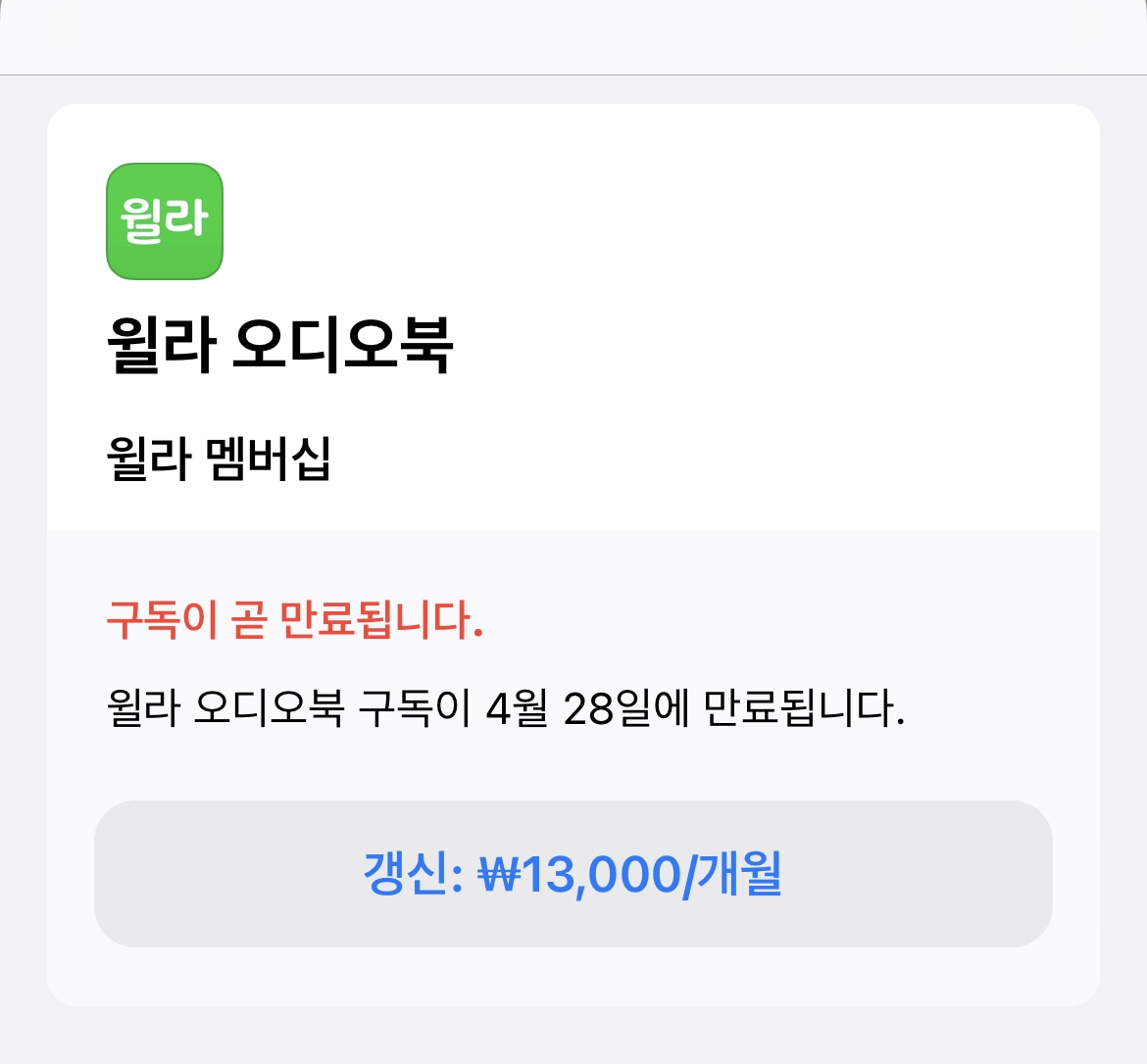 얼마 전부터 책을 더 많이 읽어야 겠다라는 생각에 윌라 오디오북을 구독해서 들었습니다. 하지만 역시 책은 눈으로 봐야하는 것일까 귀로 내용이 잘 안들어와서 원래 스타일에 맞게 하드카피 형식의 책을 사서 읽거나 전자책을 읽어야겠다라고 생각을 했습니다. 만약 한달에 1권 정도책을 구매해서 읽으면 밀리의서재 구독 값 정도는 상쇄할 수 있으니까요! 그래서 이번 포스트에서는 윌라 오디오북 구독관리에 대해 설명하겠습니다.