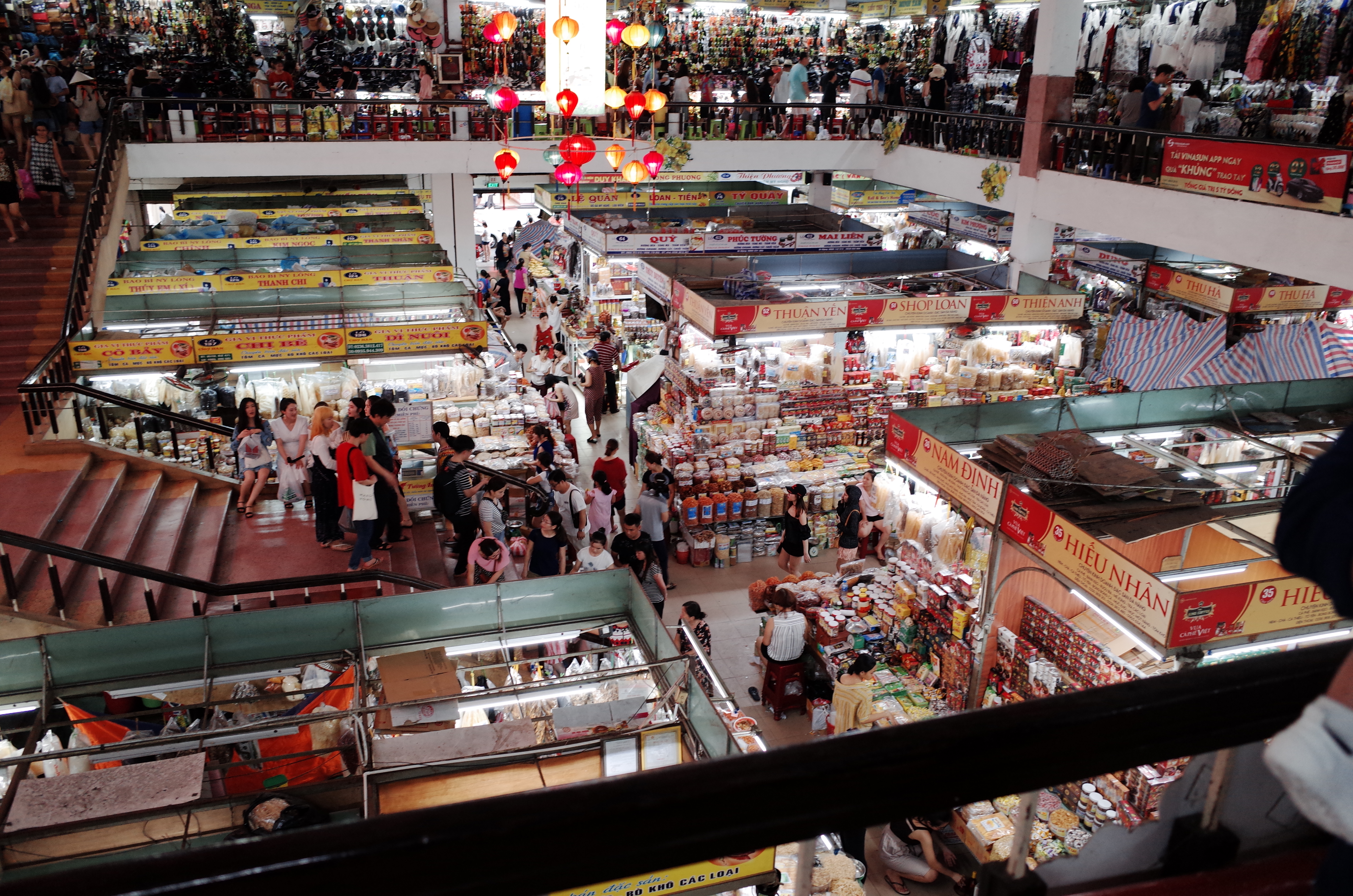 베트남 다낭 한시장은 이렇게 2층으로 되어있고 복층 형식으로 되어 있습니다. 베트남 사람들도 있지만 관광객들도 많고 한국인들이 굉장히 많았습니다. 이런곳에 오면은 흥정은 필수인거 아시죠? 초반에 부른 가격에 산다면 바보바보! ㅋㅋ거의 DC를 하면 최대 50%까지 깍을 수 있는 마술을 볼 수 있으니 바보같이 한번에 오와 싸다! 하면서 구매를 하지 마세요 그것보다 더 저렴하게 구매를 할 수 있기 때문입니다.