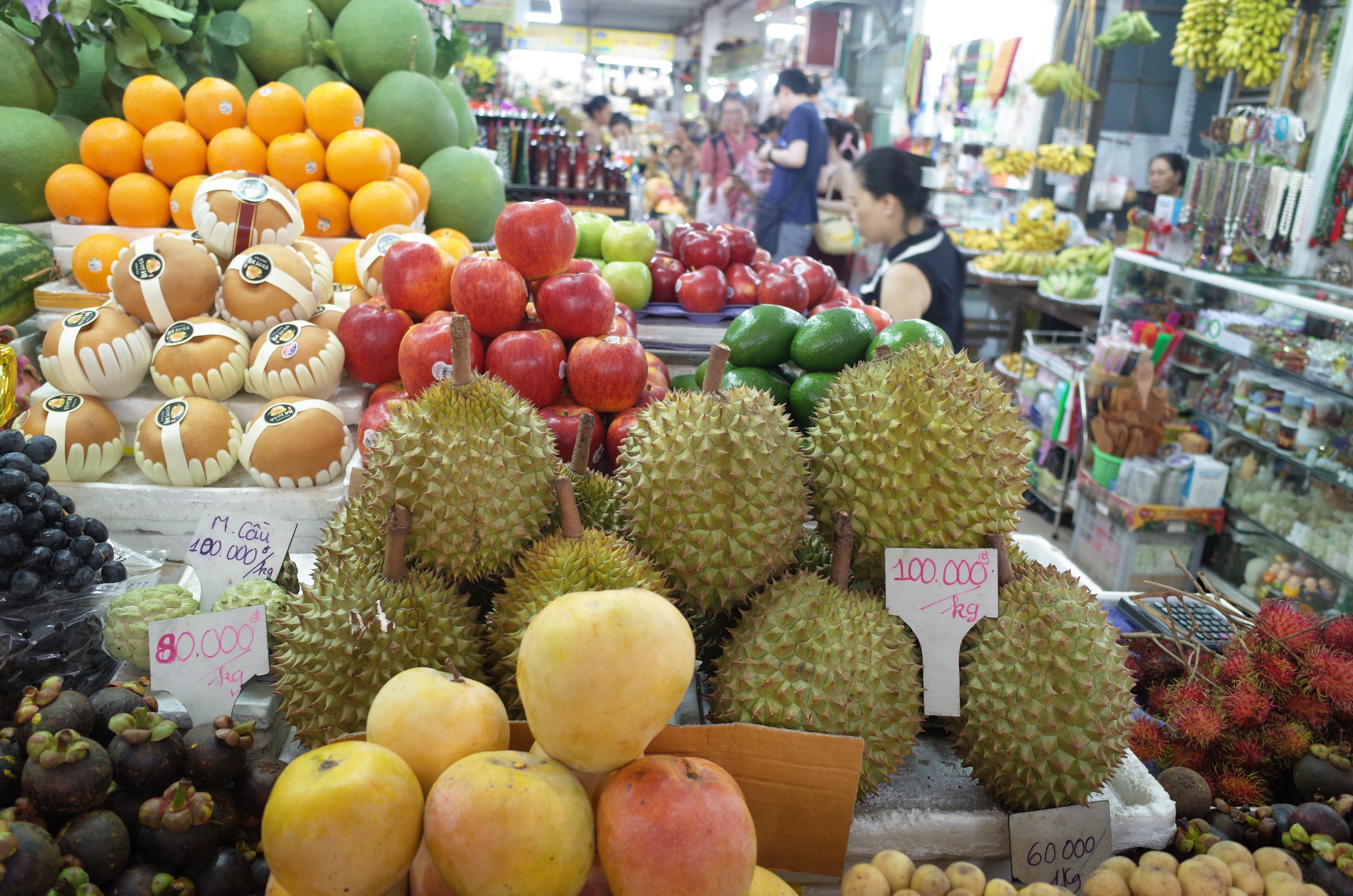 1층에는 과일과 잡화들이 있습니다. 베트남 여행을 왔을 때 가장 좋은건 맛있는 과일을 저렴하게 마음껏 먹을 수 있다는 점입니다. 하지만 베트남 다낭 한시장 과일의 문제는 시원한 과일은 우선 포기해야한다는 점입니다. 아무래도 냉장고에 보관하는게 아니라 가게안에 비치해서 파는 음식이기에 시원한 과일을 원하신다면 미리 대량으로 구매해서 숙소 냉장고에 넣어놓고 먹는걸 추천드립니다.