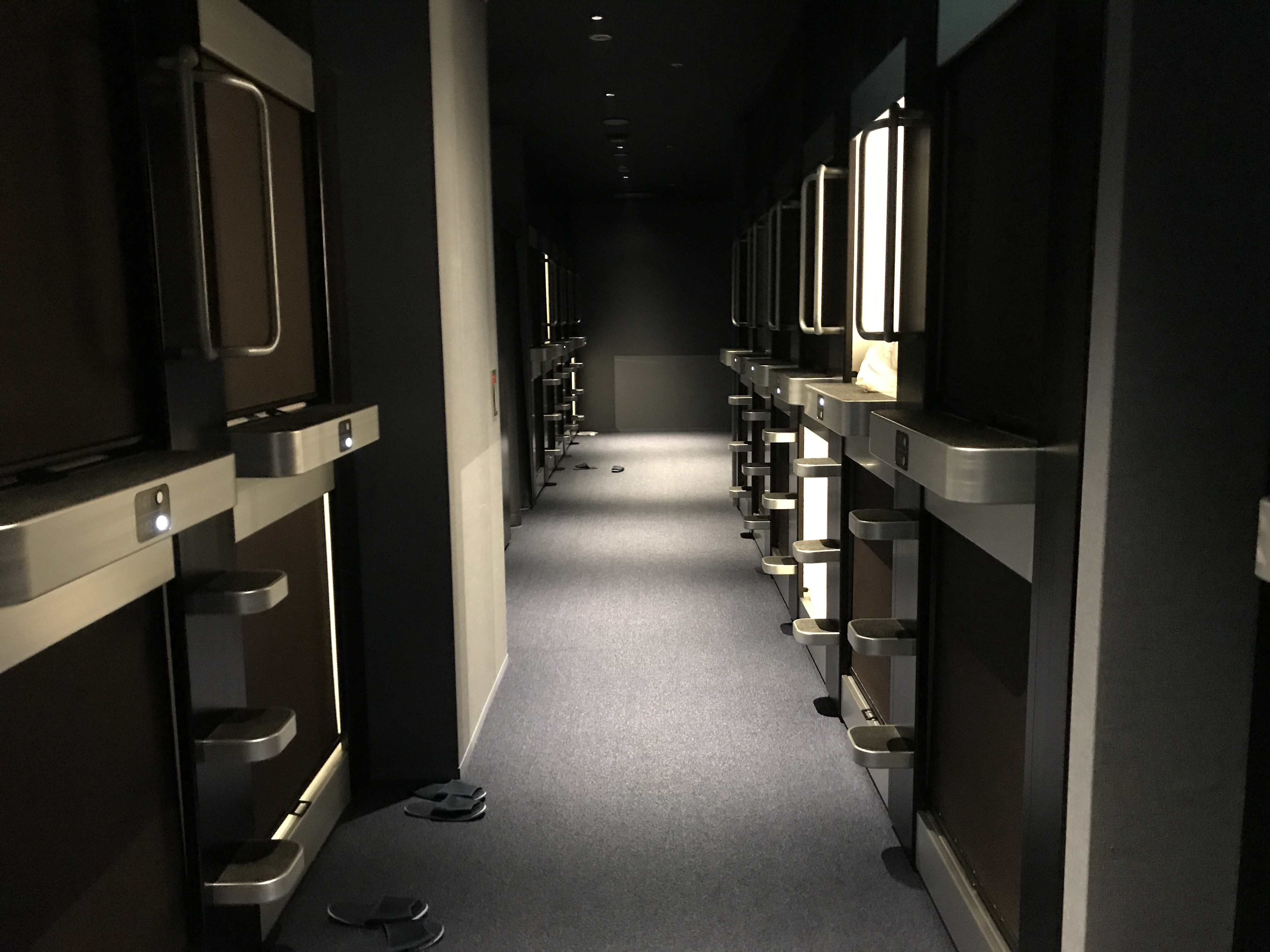 오사카 캡슐호텔 자는 곳은 이렇게 2층으로 되어 있습니다. 전 운이 좋게 맨 끝쪽에 1층 자리로 배정을 받았는데 안 좋은 점이 있다면 위에 2층이 시끄럽게 굴거나 조금 뒤척이면 그 소리가 들리기도하구요 발을 크게 굴려 걷는 사람들이 있어서 걸을 때 '쿵쿵쿵'되는 소리가 상당히 크게 들립니다. 아무래도 공동으로 쓰는 공간이기 때문에 이런 단점들이 꽤 있기 마련입니다. 특히, 코고는 사람 소리도 크게 들리니 이어폰을 끼고 잠을 주무시는걸 추천드립니다.