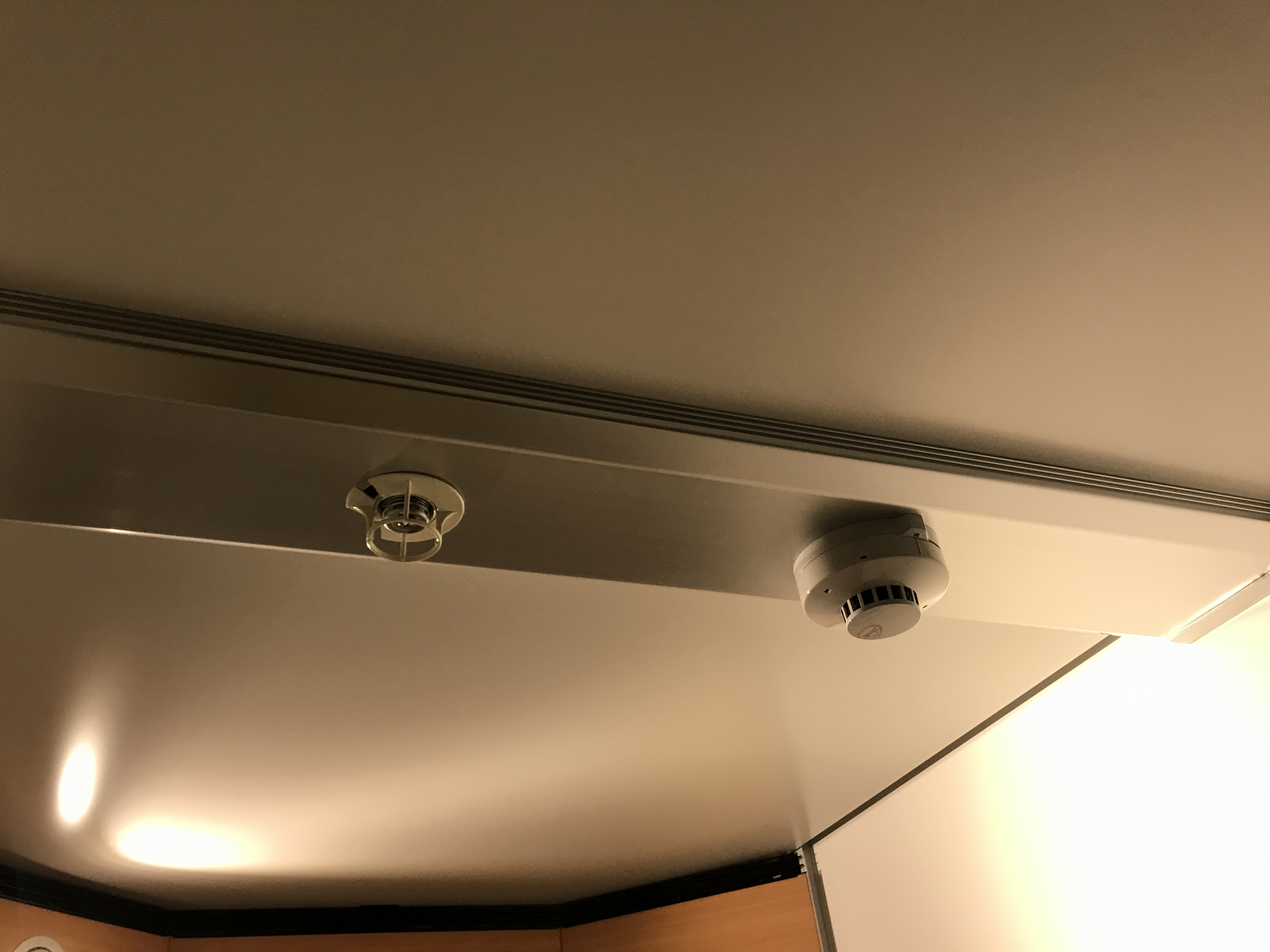 그리고 불이 났을 때 안전을 위해서 오사카 캡슐호텔 침실 위에는 이렇게 화재 센서가 있습니다. 불이 나면은 우측에 있는 센서가 인식해서 물을 뿌리는 것 같습니다. 화재 발생률이 낮긴 하겠지만 그래도 항상 안전에 주의해야 하는거 다들 아시죠? 안전을 생각하는 쉘 넬 난바 호텔 굿이네요!