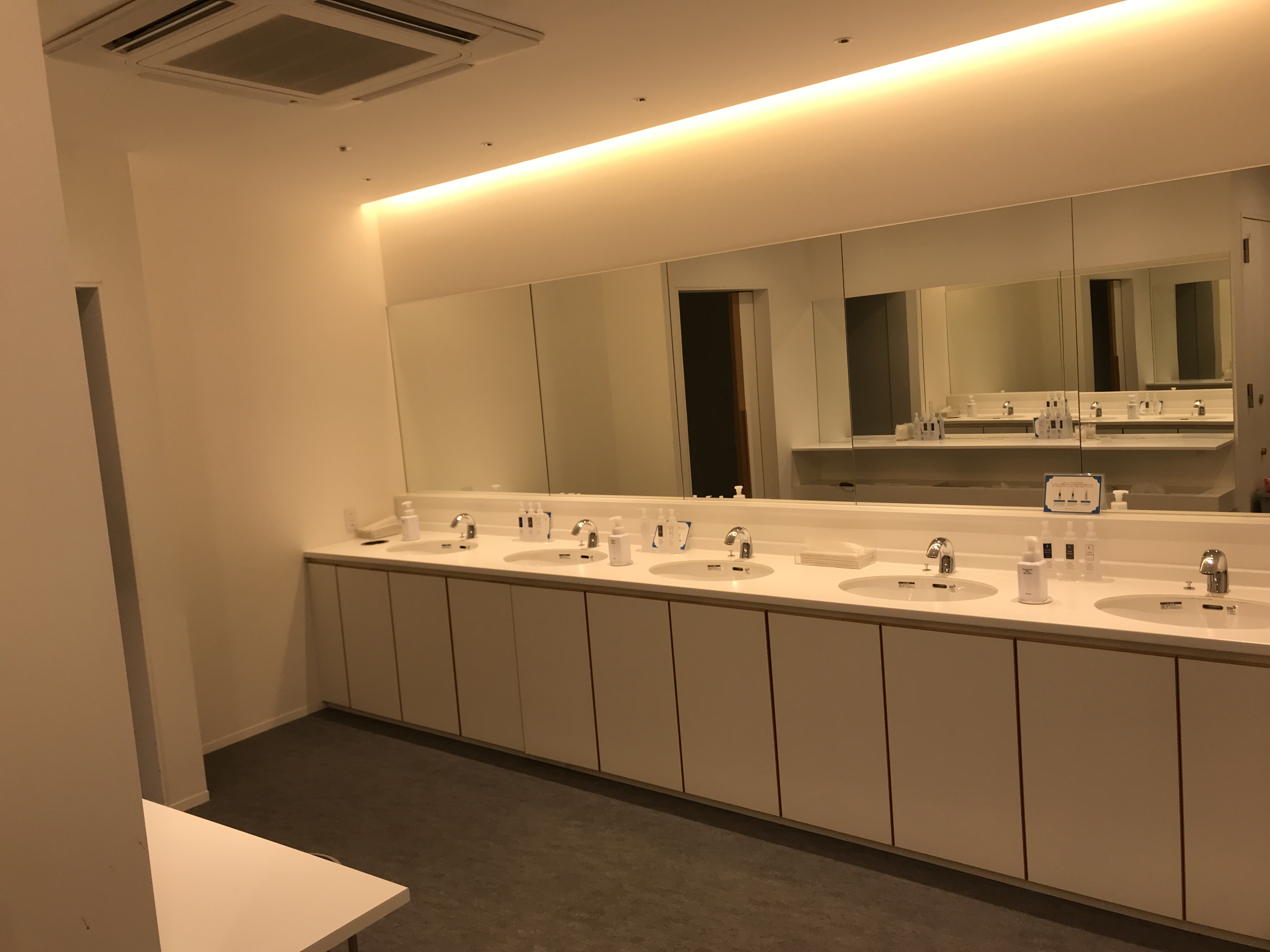 공동으로 이용할 수 있는 세면공간이 있습니다. 이곳에서 세안도하고 스킨로션도 바르고 머리도 말릴 수 있는 공간입니다. 그리고 안쪽으로 가시면은 개개인이 사용할 수 있는 샤워룸이 있습니다. 사진으로만 봐도 시설이 굉장히 깔끔해 보이지 않나요? 샤워실 안에 들어가보면 바디 워시, 샴푸, 린스가 있습니다. 폼 클렌징는 별도 준비를 하셔서 가면 좋을 것 같습니다.
