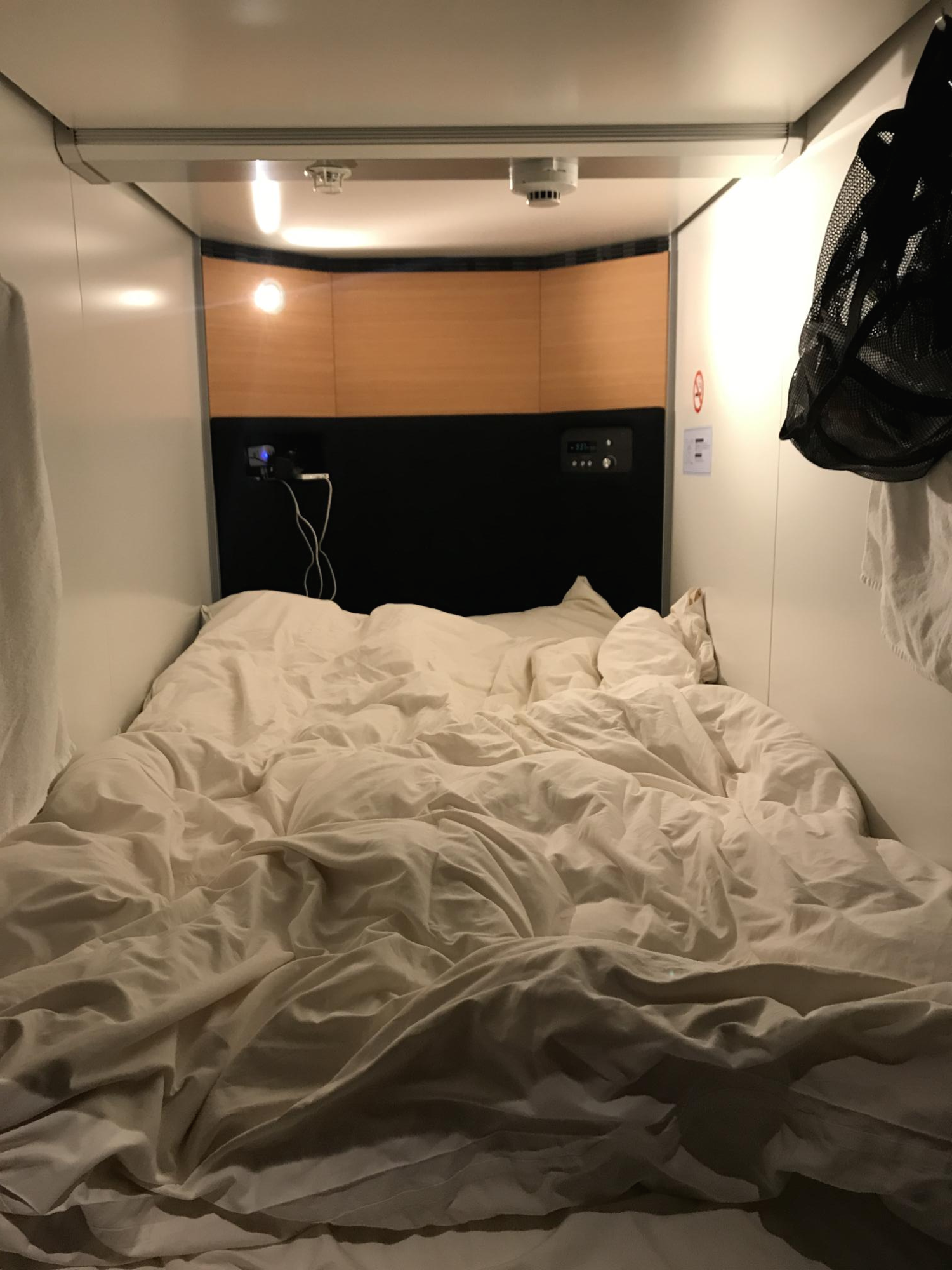 인터넷에서 검색할 때 오사카 캡슐호텔 침실 안에 공간이 굉장히 넓어보였는데 혹시나 사진을 넓게 찍어서 넓어보이나 조금 의구심이 있었는데 실제 가서 보니깐은 진짜 넓습니다. 제가 워낙 뒤척이고 자다보니깐 좁은데서 자면은 불편함을 배로 느끼는데 침대가 워낙 넓다보니깐 좌우 뒤척이면서 편안하게 잘 수 있었습니다.
