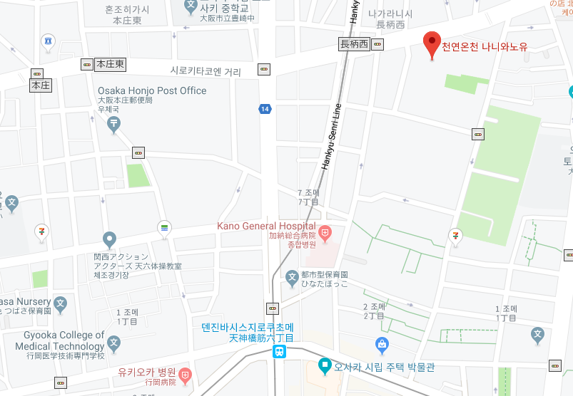 위치는 '오사카 시립 주택박물관, 덴진바시스지로쿠초메역'이에서 걸어갈 수 있습니다. 도보로 한 10분~15분 정도 걸었던 것 같습니다. 전 이때 초여름일 때 가서 조금만 걸어도 등줄기에 땀이 주루룩 흐를 때였는데 간절하게 천연온천 나니와노유 차가운 물이 필요했었기에 열심히 온천을 향해 걸어갔습니다.