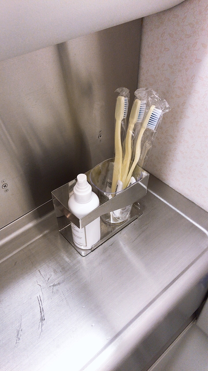 화장실에는 치약과 칫솔이 구비되어 있어서 기내식을 먹고서 양치를 할 수 있어서 너무 좋았습니다! 역시 대한항공 짱! ㅋㅋ 몇만원 차이라면은 전 대한항공을 추천하고 싶습니다.