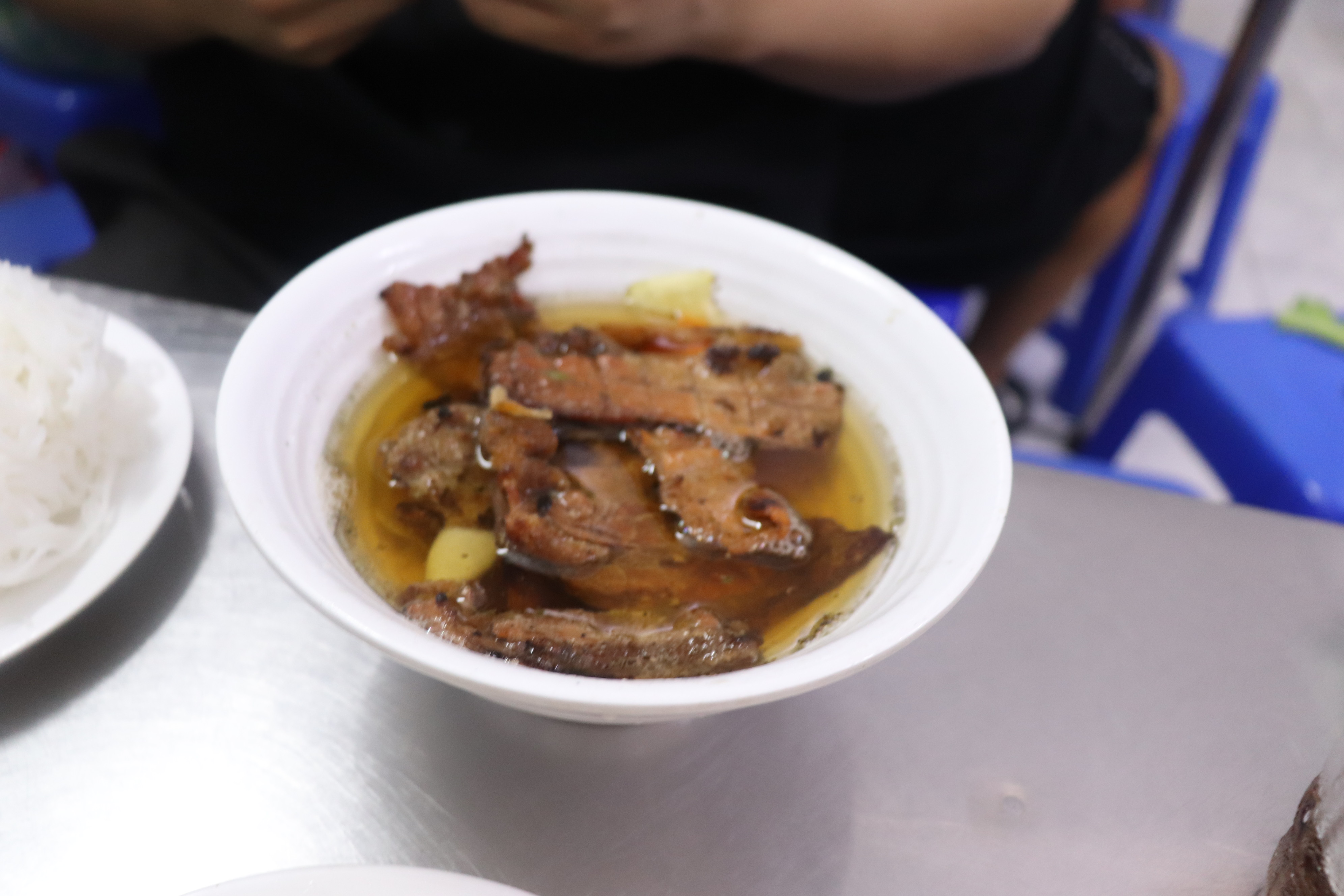 하노이 오바마 분짜가 제가 먹었던 박닌 분짜 고기랑 다른게 있다면은 박닌에서 분짜 고기는 뭔가 흐물흐물한 모양이였다면 하노이 오바마 분짜는 사진에서 보시는 바와 같이 빳빳하게 펴진 삼겹살 처럼 되어 있었습니다. 그래서 식감이 더 좋고 맛있었습니다. 뜯어먹는 맛이 있었다고 할까요? 하노이 오바마 분짜가 맛있는 이유가 여러가지네요! 하