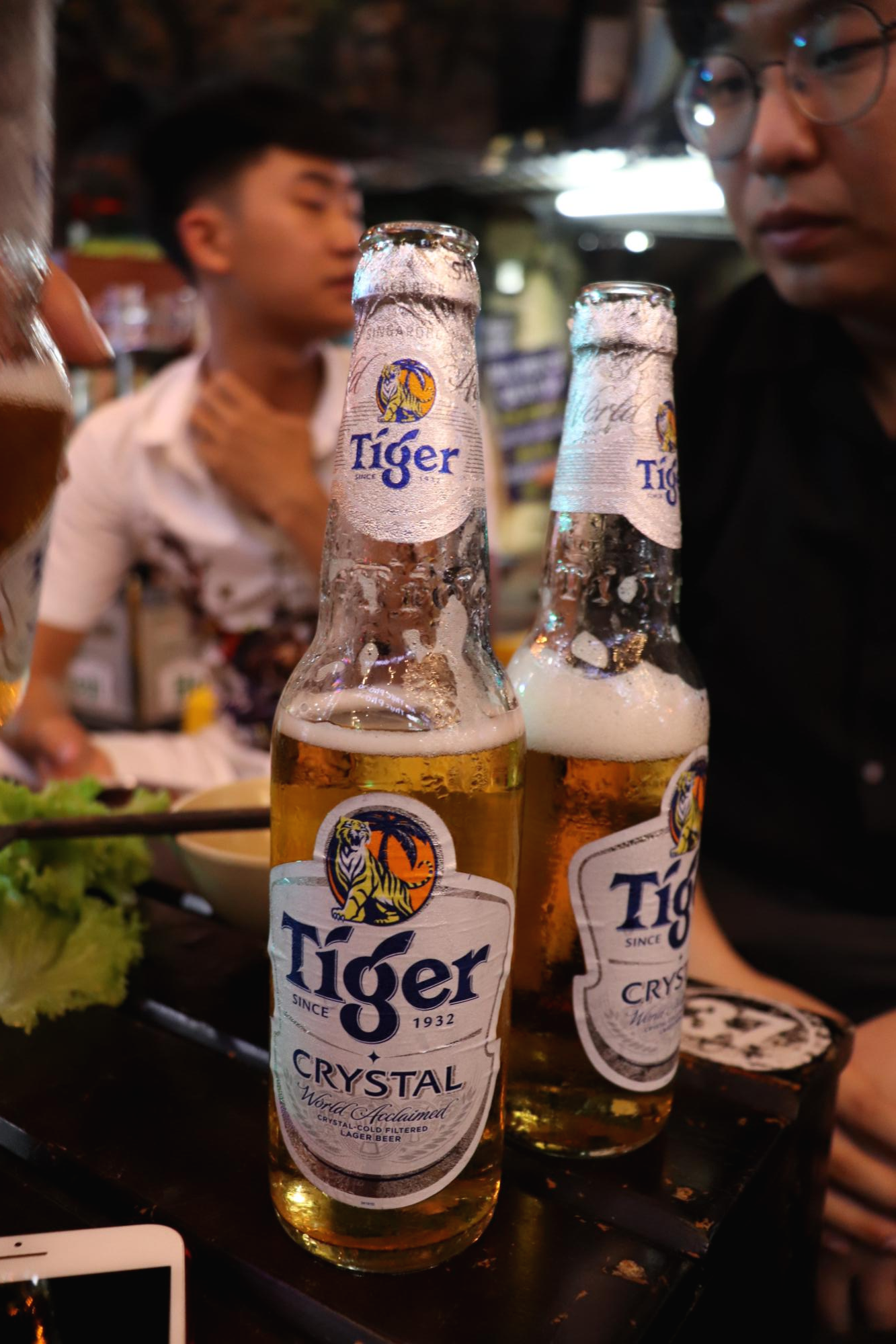 저희가 시킨 맥주와 안주입니다. 음식은 맛있긴했지만 하노이 맥주거리에서 가장 힘들었던 점은 날씨가 굉장히 덥고 습해서 열이 많은 저에게는 너무 힘들었습니다. 선풍기, 에어컨이 없던지라 베트남의 더위를 그대로 느낄 수 있는 야외인지라 나중에는 먹다가 더워서 시원한 바를 찾게됐습니다. 나중에 시원한 날에 베트남 다시 오는걸로!