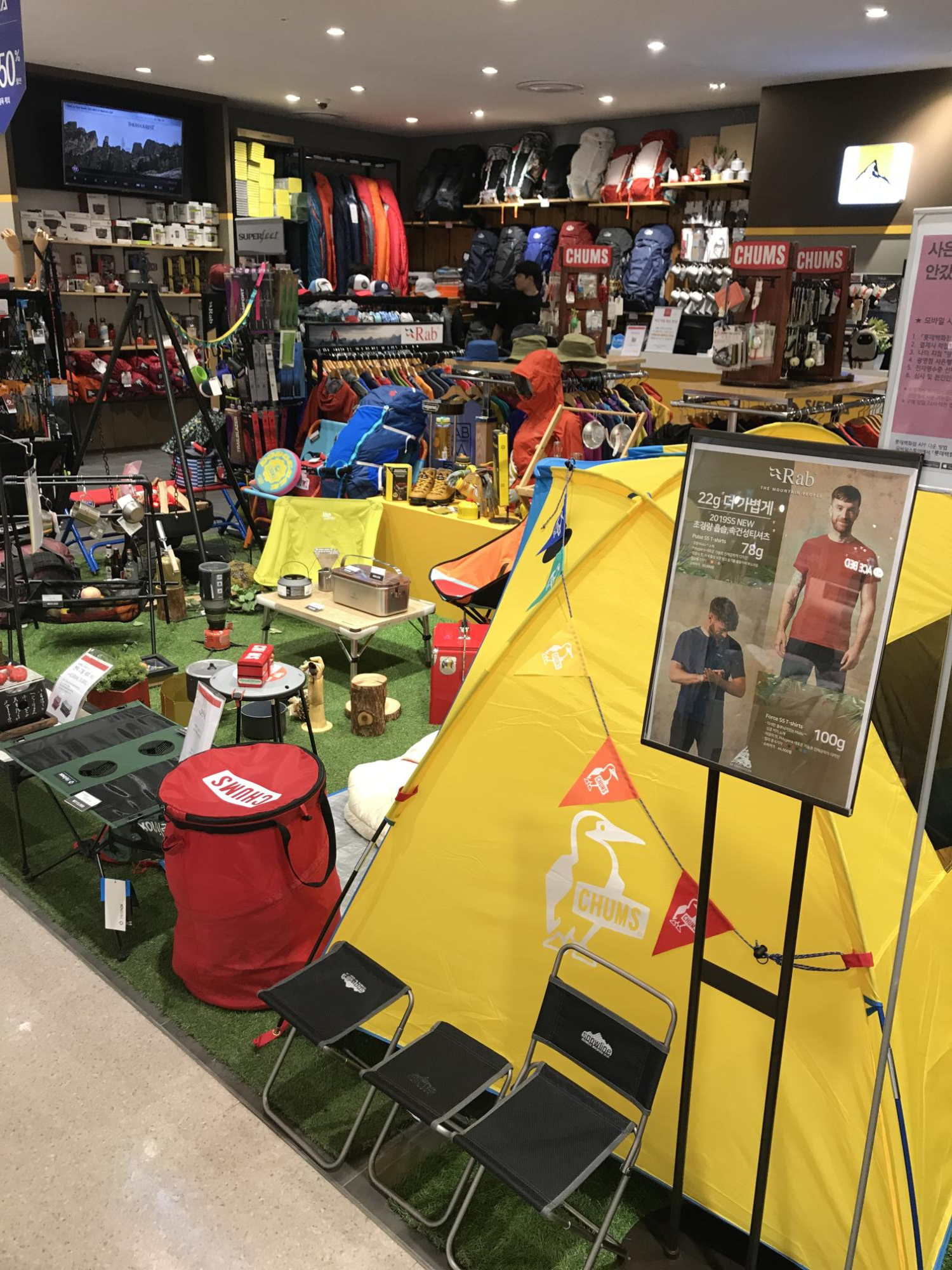 광명 롯데프리미엄아울렛 캠핑용품점 SIERRA은 그렇게 크지는 않습니다. 공간이 협소해서 DP용으로 보여준 텐트는 하나밖에 없었습니다. 가운데 캠핑을 할 때 모습을 연상될 수 있도록 DP를 해놨는데 아기자기한 용품들이 많아서 신기했습니다. 진짜 날씨 좋은날 조용한 곳에 가서 텐트를 피면서 좋은 사람들과 맛있는 음식하면서 자연을 느낀다면 그만큼 행복하고 좋은게 있을까 생각을 했습니다.