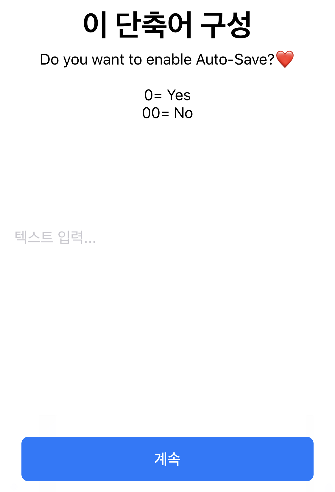 1. Do you want to enable Auto-Save?♥라는 질문에 숫자 "0"을 입력하며 계속을 누르세요.