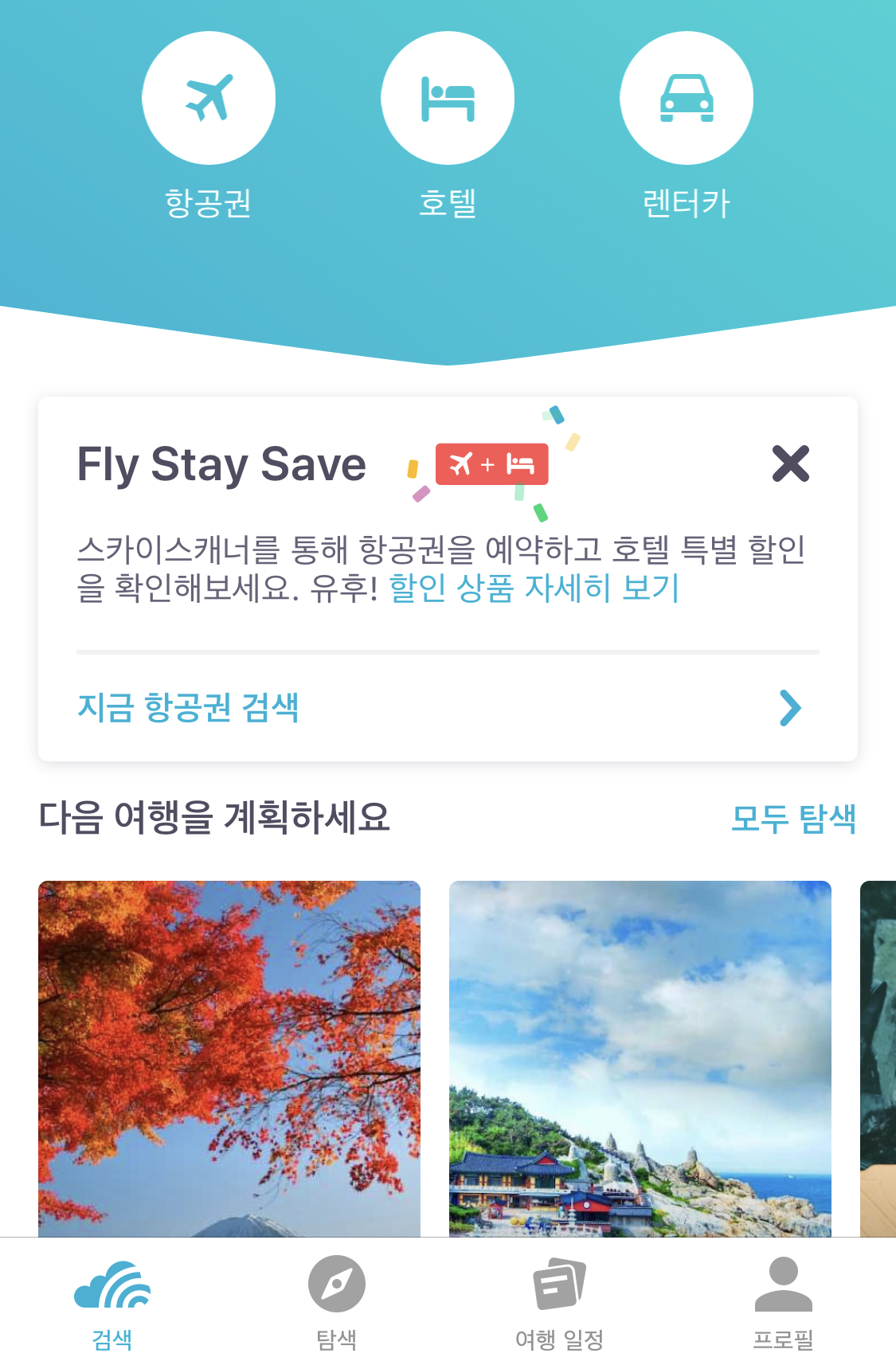 안녕하세요, 제가 여행을 갈 때 필수적으로 사용하는 비행기 예약 어플이 있습니다. 그 어플이름은 바로 Skyscanner인데요 항공권, 호텔, 렌터카 3가지를 알 수 있는 기능이긴하지만 전 주로 항공권 비행기를 예약할 때 사용을 하고 있습니다.이 어플에 최고의 장점은 바로 내가 원하는 항공사, 시간, 가격대를 비교하여 볼 수 있다는 점입니다. 그렇다면 어떻게 사용하는지 한번 알아보도록 하겠습니다.