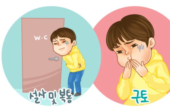 제 개인적인 경험을 토대로 이야기해볼 때 초반부터 설사를 하진 않습니다. 마치 감기걸린것처럼 두통, 오한, 몸살기, 구토를 동반하다가 배 안에서 '꾸루룩'소리와 함께 설사가 시작됩니다. 설사는 그냥 설사가 아닌 일반적으로 말하는 '물X'처럼 마치 입에서 먹은 물이 그대로 항문으로 나온다는 느낌입니다.
