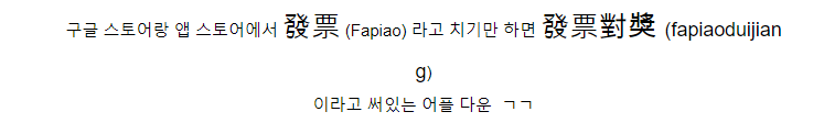 Play Store에 들어가시면은 '대만영수증복권'이라고 치시면 상단에 사진 어플이 나온다고 합니다. 아이폰은 위 언어를 그대로 작성해야하합니다. 어플로 들어가면은 해당 년월을 정하는 클릭칸이 있는데 내가 해당하는 년월을 클릭합니다. 그러면 복권당첨번호가 나옵니다.