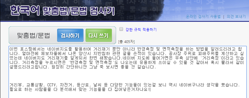 위는 제가 얼마전에 작성한 네이버지도 거리재기 측정 포스팅 내용입니다. 2문장 정도를 넣은 후 검사를 해봤는데 결과가 참담했습니다. 한번 보실까요?
