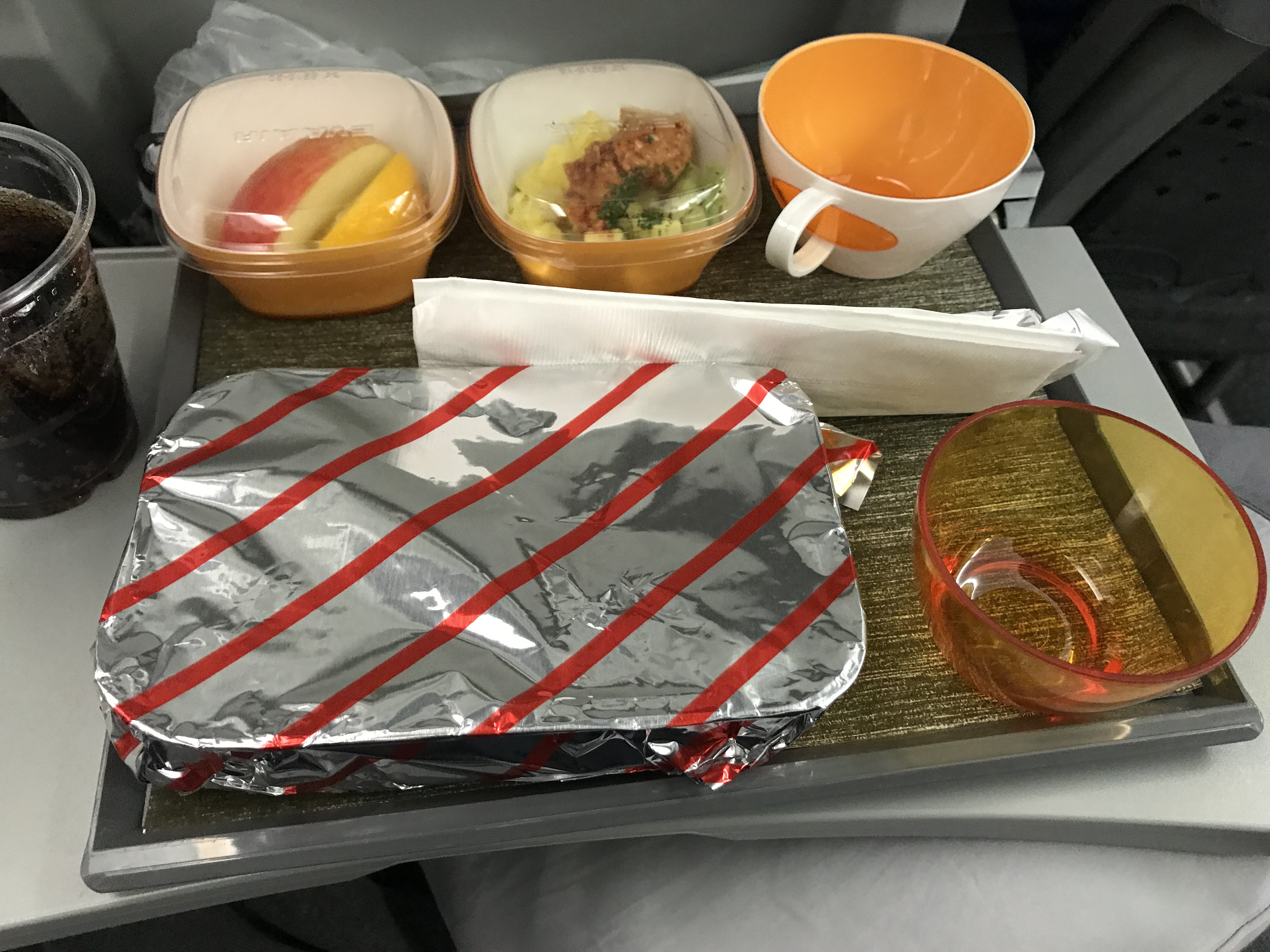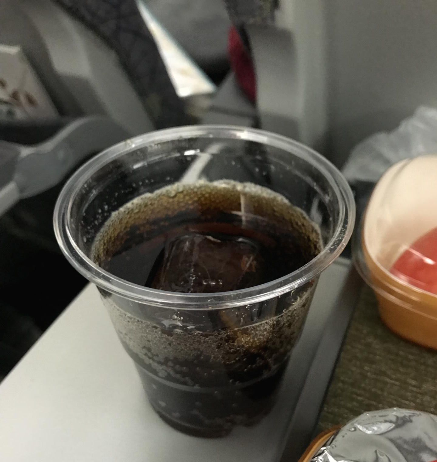 타이베이에서 이른 저녁을 먹었기에 BR150 기내식이 기대됐습니다. 그래도 BR149 비교하면 굉장히 맛있고 만족스러웠습니다. 대만 음식들이 기름진 음식이 많아서 그런지 여행 내내 탄산이 땡겼습니다. 음료를 무엇을 먹을까 해서 자신있게 코크!라고 하니 시원한 얼음에 콜라를 넣어서 기내식과 함께 줬습니다.