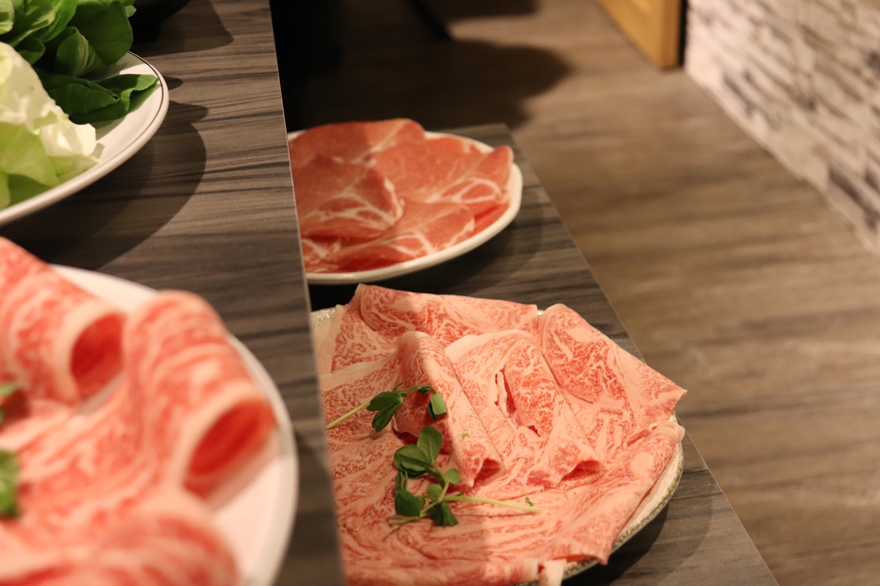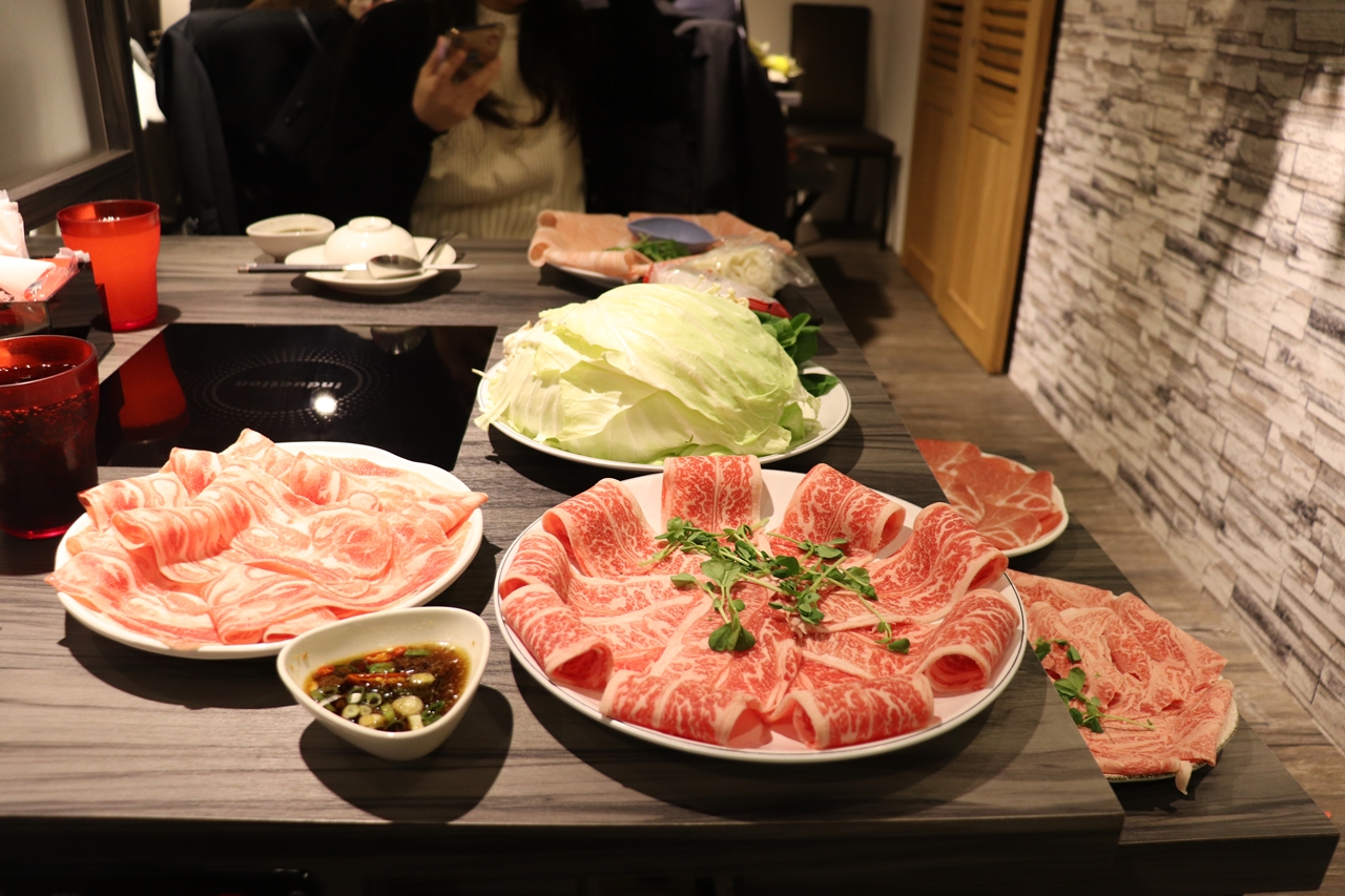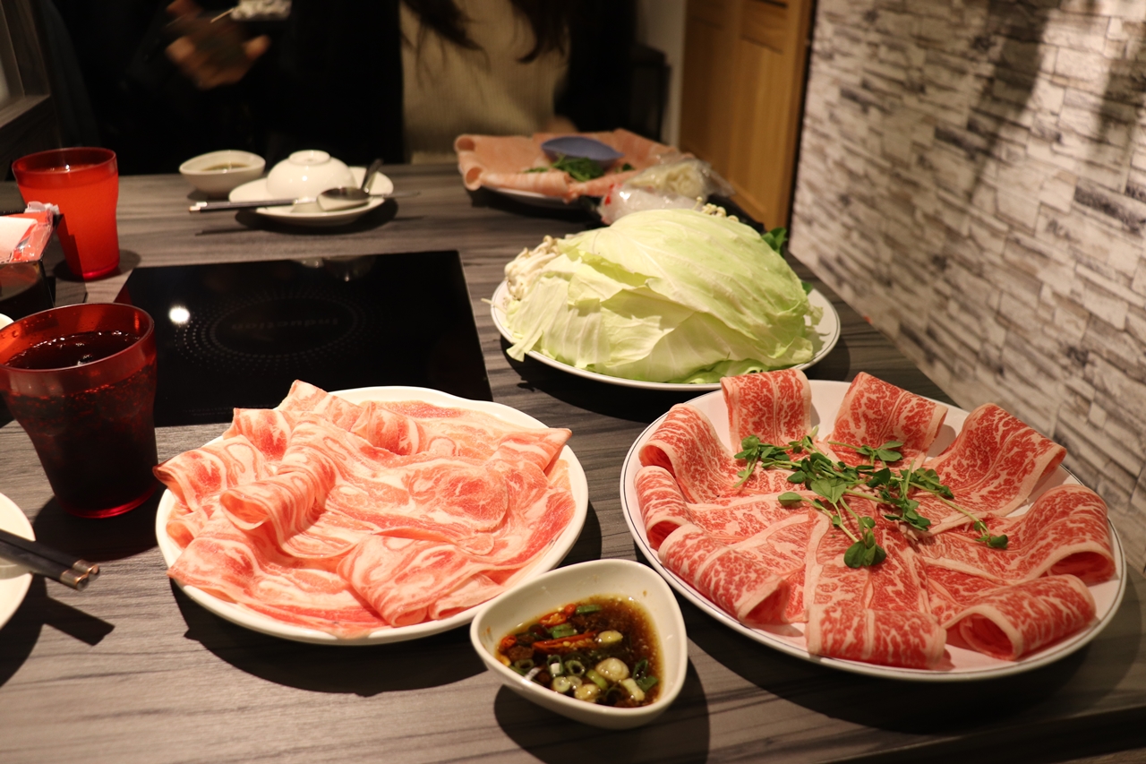 육수는 우유맛과 마라맛 2개를 했습니다. 2개 소스맛이 확연하게 다르기 때문에 서로 선호하는 사람도 확연하게 차이가 납니다. 하지만 둘다 좋아하는 분이라면 진정한 미식가겠죠? 전 느끼한걸 안좋아하는건 아니지만 많이 못먹어서 주로 마라 국물에 고기를 데쳐서 먹었습니다. 하지만 우유에도 데쳐서 먹으면 그 풍부한 담백함을 느낄 수 있습니다.