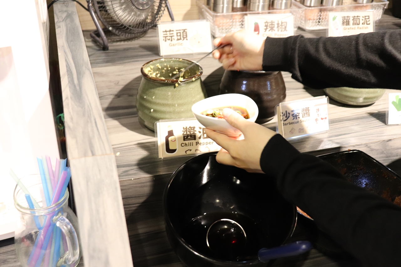 자리에 앉아서 주문을 하고나서 소스는 직접 제조를 해야합니다. 사실 소스는 각자 취향에 맞게끔 만들어야하지만 소스에 대해 전혀 모르기 때문에 옆 테이블을 보면서 힐끗 보면서 맞게끔 섞었는데 전혀 모르겠다면은 그냥 다 떼려넣으셔도 될 것 같습니다. 왜냐면 고기랑 국물 자체가 워낙 맛있기 때문입니다!