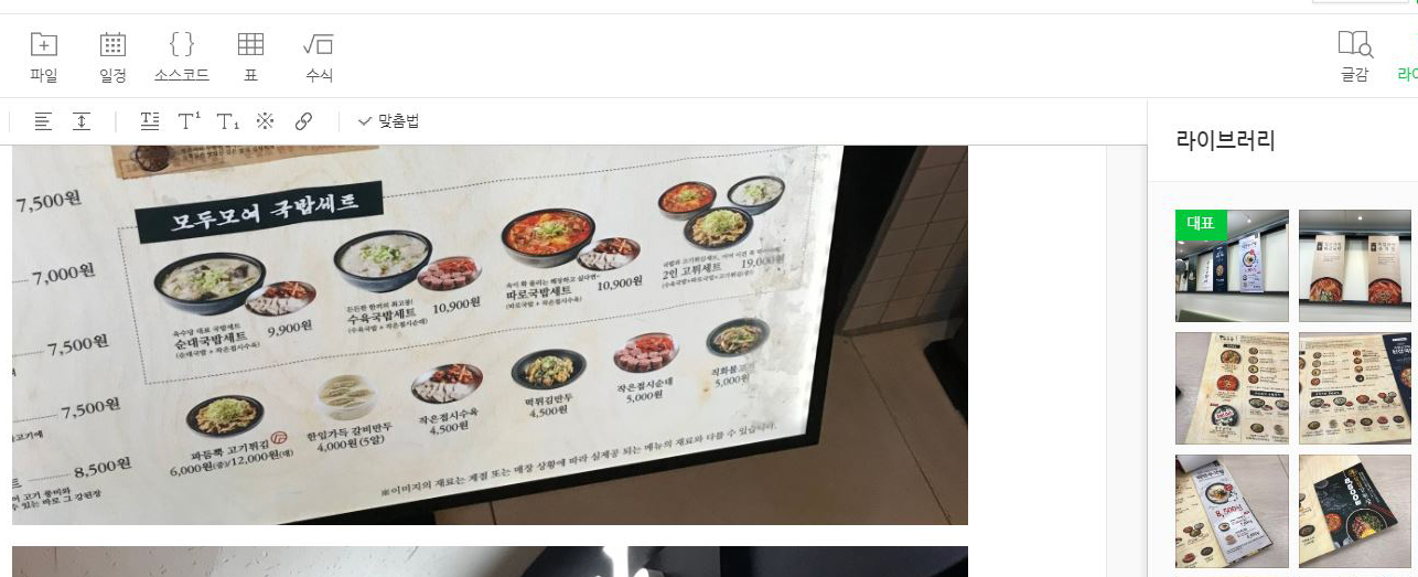 블로그 또는 티스토리 포스팅 '사진'을 누릅니다. 사진을 누르면 아까 Mobile로 만든 폴더 및 사진이 있습니다. 해당 폴더 및 사진을 클릭 한 후 확인을 누르면 이렇게 다운로드 한 후 블로그 글쓰기 창에 사진이 아래와 같이 업로드가 됩니다.