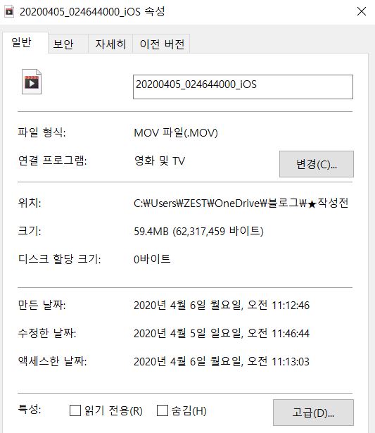 위에보시면 MOV파일에서 mp4로 확장자가 변경된거 보이시죠? 이게 해당 파일로 포스팅을 작성하려고합니다.