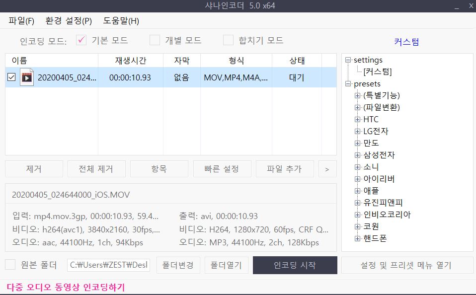 mov파일을 mp4로 샤나인코더로 변경 완료했습니다.
