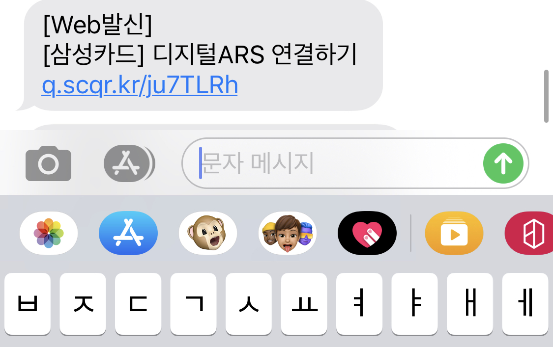 우선 삼성카드 고객센터 전화번호 1588-8700을 클릭을 하면은 디지털ARS를 연결 할 수 있는 방법이 제시됩니다. 저같은 경우에는 알림창이 뜨지 않았고 대신 메세지가 왔습니다. 메세지 링크를 우선 클릭을 하면 아래 사진과 같이 삼성카드 디지털 ARS창으로 이동됩니다.