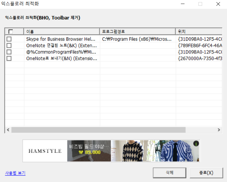 -익스플로러 최적화 : BHO, Toolbar 제거