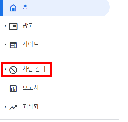 애드센스에 들어가면은 좌측에 '차단관리-광고심사센터'로 들어갑니다.