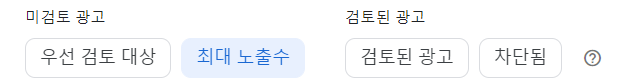 크게 '미검토 광고, 검토된 광고'가 있는데 검토된 광고는 내가 이미 본 광고들이구요 미검토 광고에서 '우선검토 대상, 최대노출 수'에서 광고를 차단하면 됩니다.