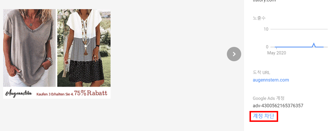 광고를 차단해도 지속적으로 같은 광고가 뜰 수 있는데 극너 아마 Google Ads계정에서 광고를 계속 만들었기 때문입니다. 이럴때에는 광고를 개별적으로 차단하는 것이 아니라 아예 '계정차단'을 눌러서 광고를 송출하는 계정 자체를 차단하는 방법입니다.