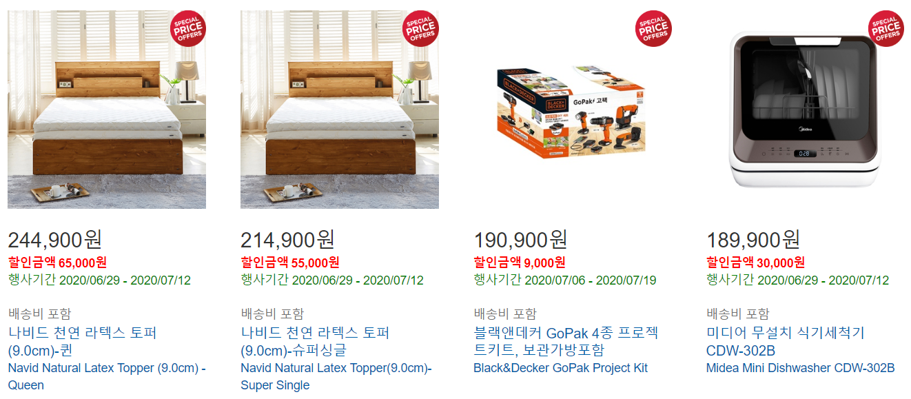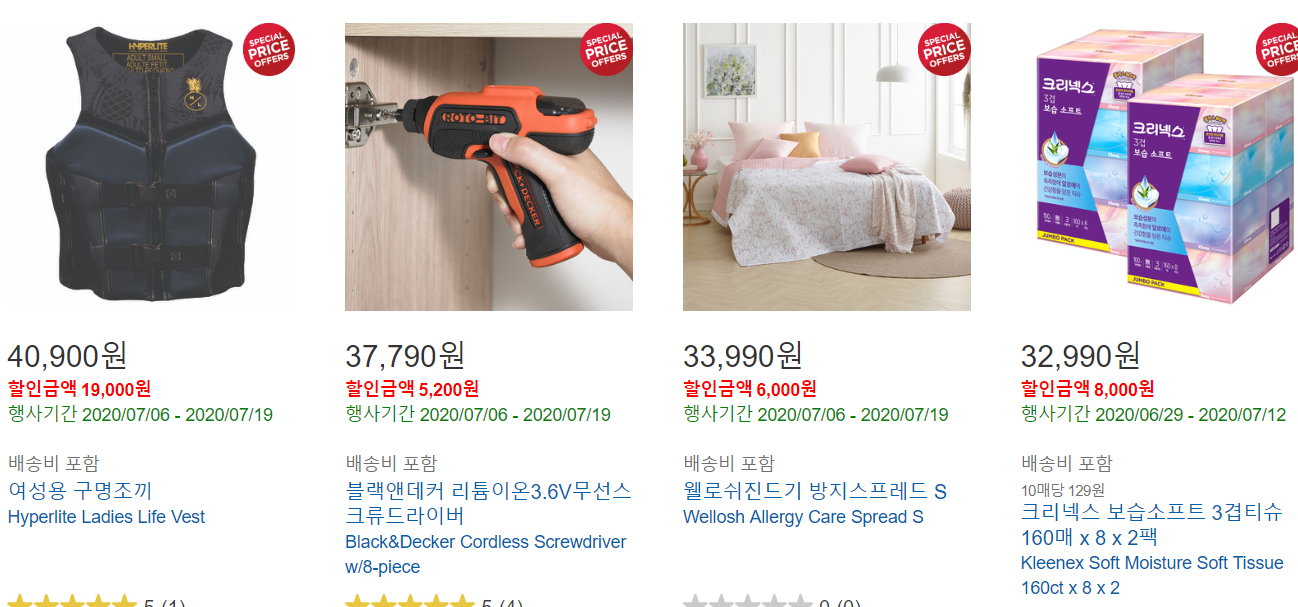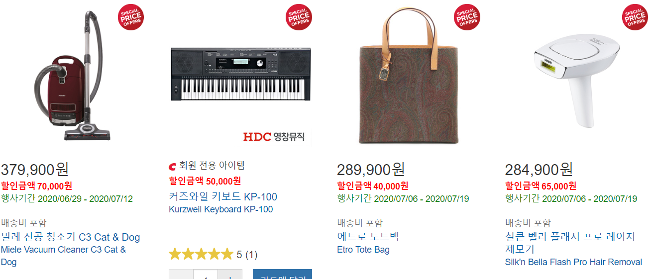 그리고 그 이하 할인상품에는 키보드, 진공청소기, 토트백, 레이저 제모기, 식기세척기, 살균건조기, 블랙박스, 미디어 세탁기, 외장하드, 키매트세트, 복근 운동기, 무선드릴, 구명조끼, 여성용 구명조끼, 면도기 세트, 오메가3, 골프공, 요가매트, 요가 매트, 세탁세제 등이 있습니다.