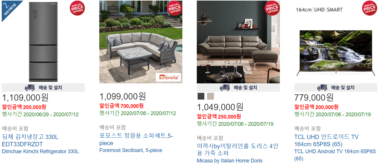 워낙 많은 상품들이 할인을 진행하고 있기 때문에 전 고단가에 큰 할인이 있는 것들을 모아모아 정리를 해보도록 하겠습니다. 아래는 사진을 볼수있도록 사진만 첨부하고 파격적인 할인상품(100,000원 이상 할인금액)들이 있는것만 정리를 하겠습니다.