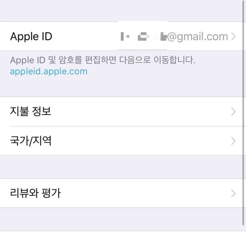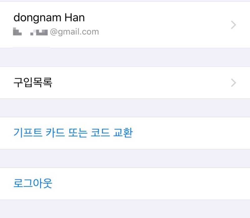 우선 앱스토어 들어가서 우측 상단에 보면은 프로필이 있습니다. 프로필을 누르며는 위와같은 화면이 나오는데 맨 상단에 있는 주소? 자신의 계정정보를 클릭합니다.