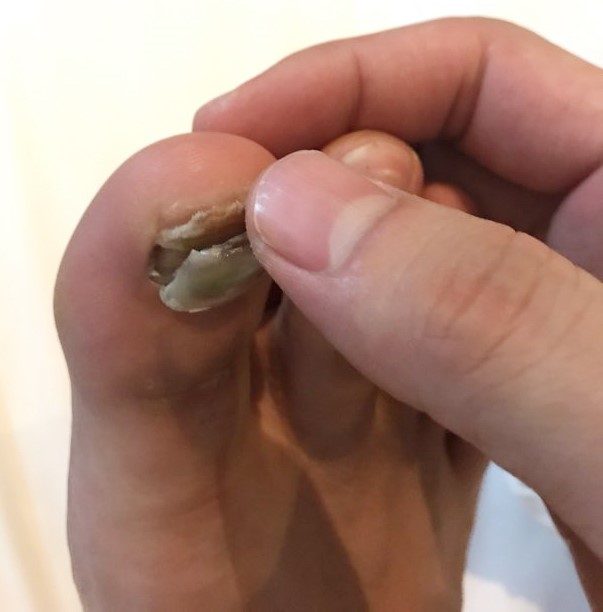 If, 저처럼 안에 새로운 발톱이 나은 상태라면 발톱깍기로 붙어있는 부분을 뗀 상태에서 뜬 발톱을 제거한다.