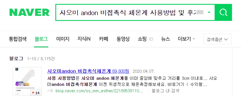 하지만 신기하게도 샤오미 체온계는 블로그가 아닌 '웹사이트' 영역에 반영시켜놓고 있습니다. 하지만 이것도 제목을 풀네임으로 붙여넣기 했을 때 경우입니다.
