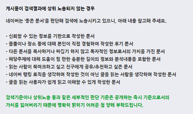 - 네이버 랭킹 로직을 생각하며 작성한게 아닌 읽는 사람을 생각하며 만든 문서