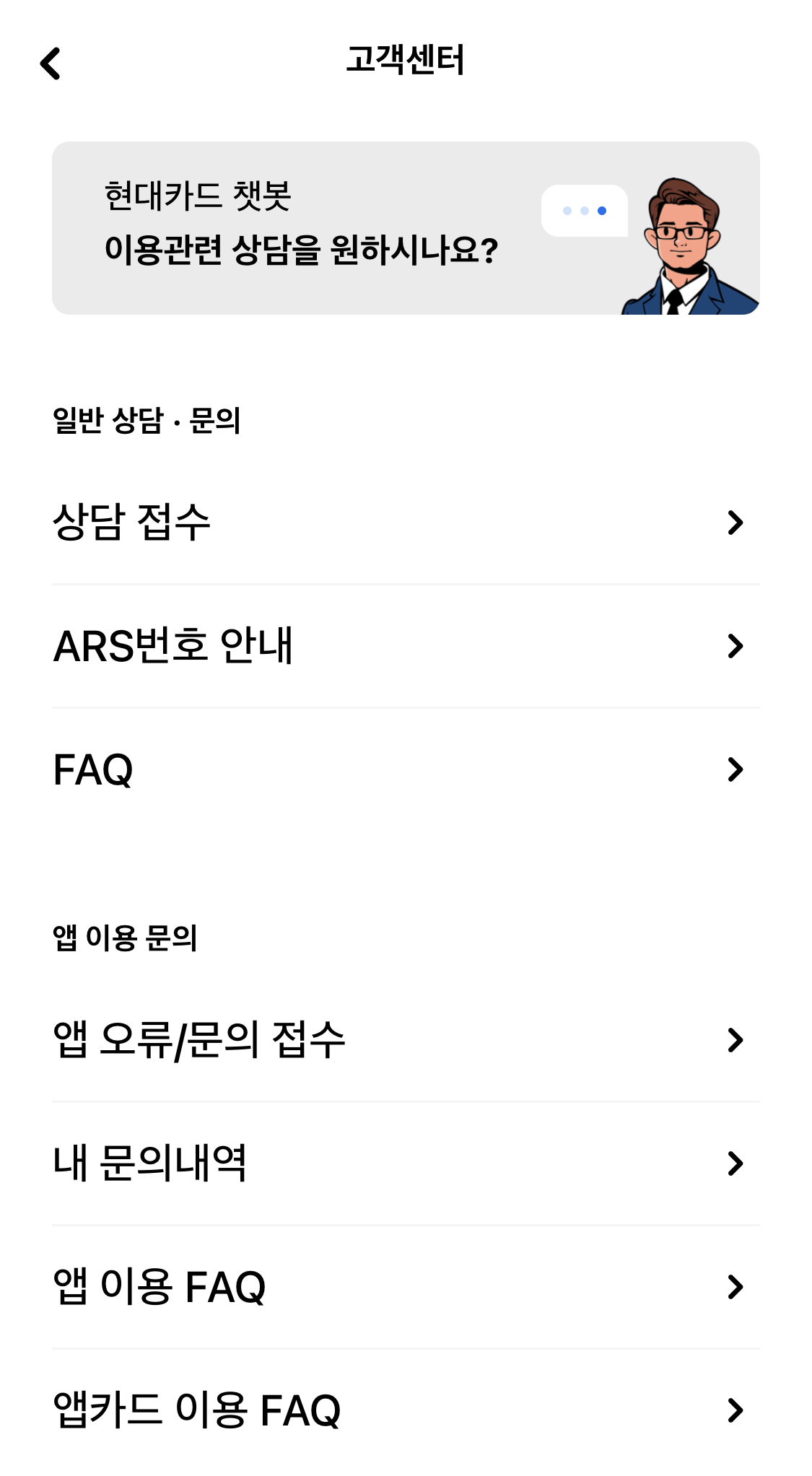 현대카드 APP으로 고객센터 상담하기