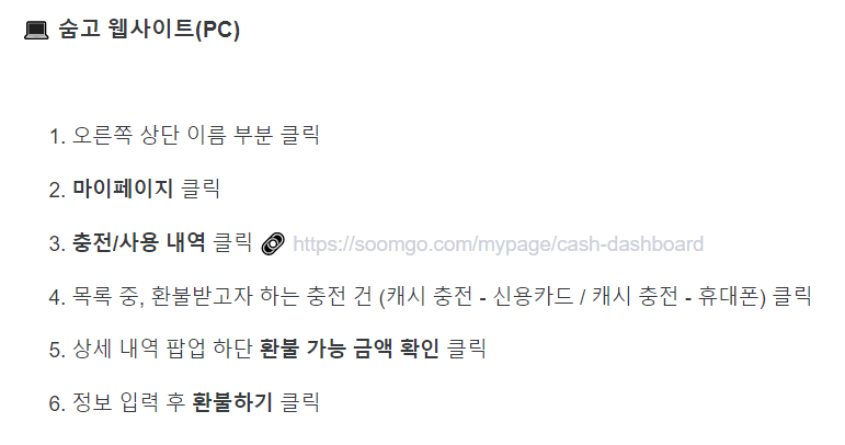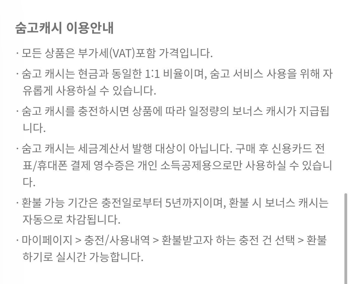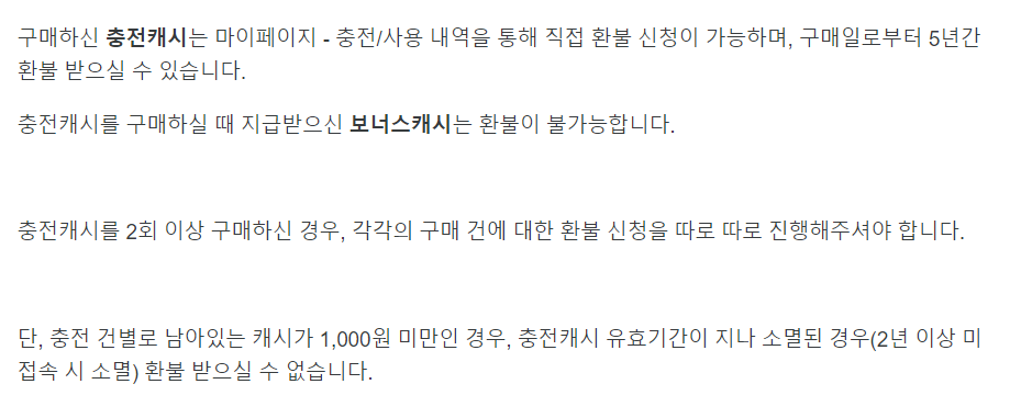 또한 내가 1번(65,000원), 1번(65,000원) 총 2번을 했다면 한번에 130,000원 숨고 환불이 가능한게 아니라 각각 환불 신청을 해주셔야 한다는 점 참고하시면 좋을 것 같구요! 남은 캐시가 1,000원 미만일 경우에는 충전캐시 유효기간이 지나 소멸된 경우(2년 이상 미접속 시 소멸) 환불 받을 수 없습니다.