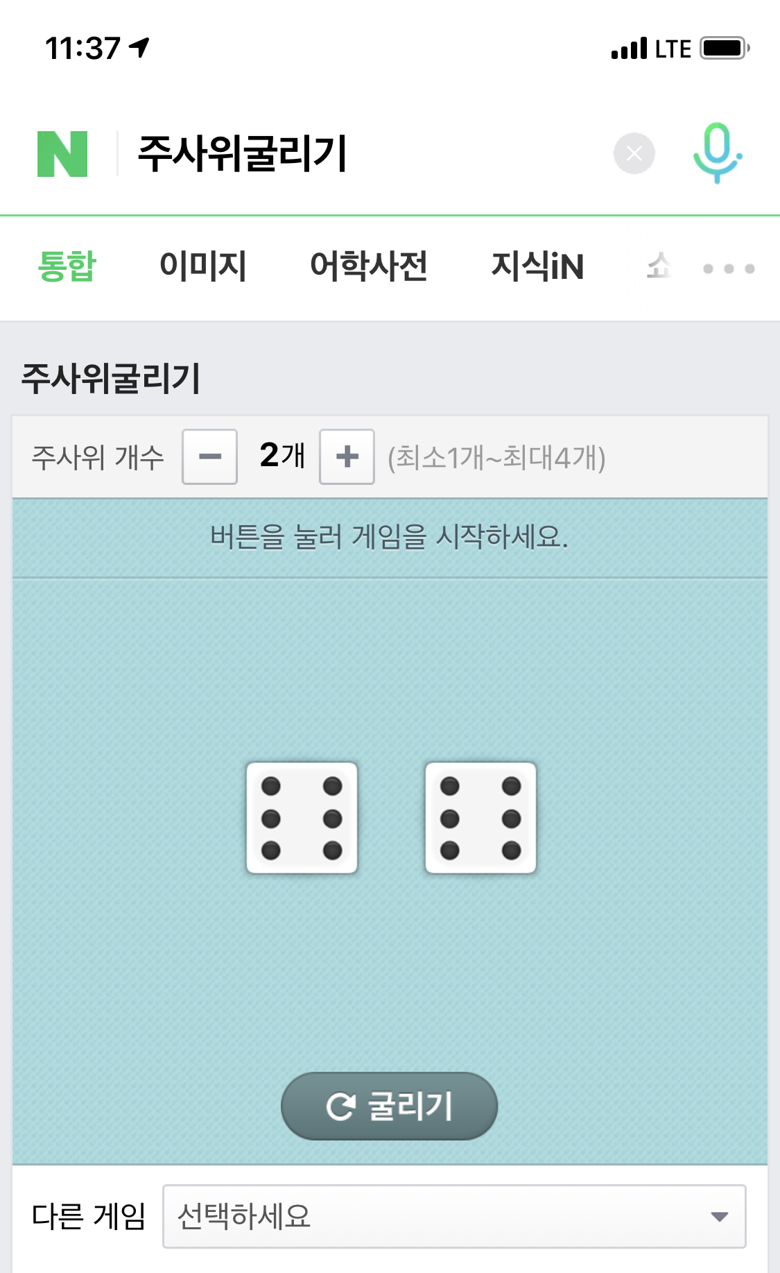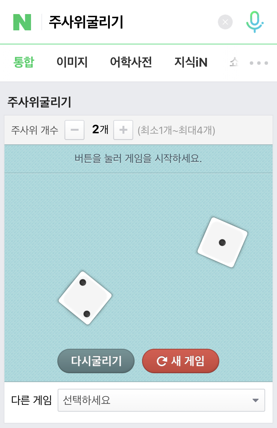 주사위굴리기는 매우 간단합니다. 주사위 2개를 온라인으로 만들었다고 보면 됩니다. 굴리기를 누르면은 주사위가 굴려집니다. 전 3개가 나왔네여! 주사위가 없을 때 사용하기 좋은 방법이 아닐 수 없습니다. 나중에 부루마블 같은거 할 때에 주사위가 없으면은 이걸로 대체해도 좋겠다 생각을 했습니다.