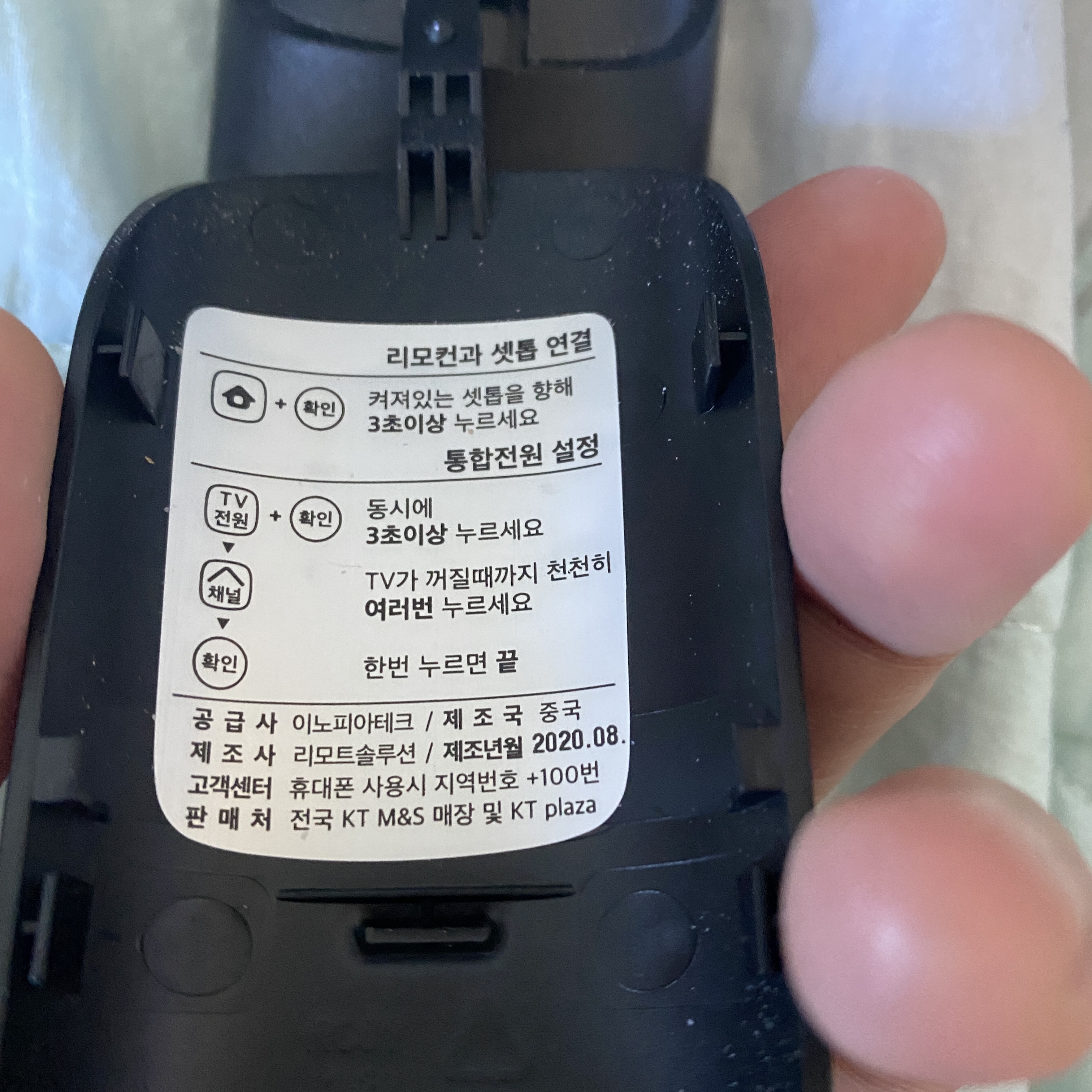 그래서 리모컨 배터리쪽을 열어보니 위와같이 설명이 되어있었습니다. 일단 리모컨과 셋톱을 연결하는 방법을 한번 더 설명드리겠습니다.