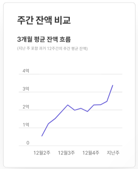 월 카드 비용을 분석하여 카드 리포트를 알려줍니다. '지난달 대비 이용금액, 업종별 이용 현황, 요일별 이용 현황, 지출 특이사항, 부가세 공제여부'를 알려줍니다. 거기에 자금리포트까지 더하여 '계좌 합산 잔액, 3개월 평균 잔액, 주간 입금 총액, 주간 출금 총액'을 알려줍니다.