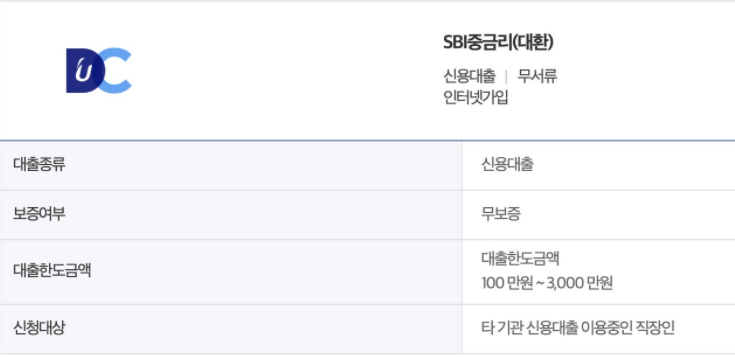 평균적으로 약 17%라면 받을 수 있는 SBI 중금리 상품이면서 최대 3,000만원까지 받을 수 있습니다. 대출 조건은 원리금 균등분할 방식입니다. 신용대출, 무서류, 인터넷 가입 상품이면서 신청을 할 때에는 필요서류가 '신분증사본, 재직확인서류, 소득확인서류(원천징수영수증 등)'이 필요합니다.