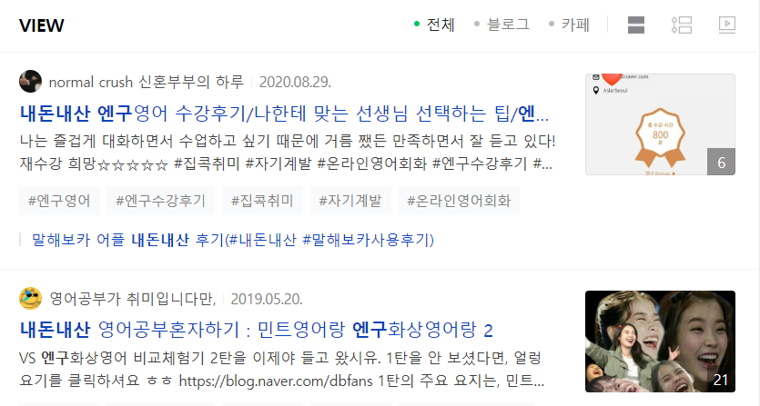 정확한 후기를 위해서 네이버에 엔구 내돈내산이라고 검색을해서 실제 후기를 한번 정리해보도록 했습니다. 블로그 1위~5위까지 전체적인 평을 한번 종합적으로 정리해보도록 하겠습니다.